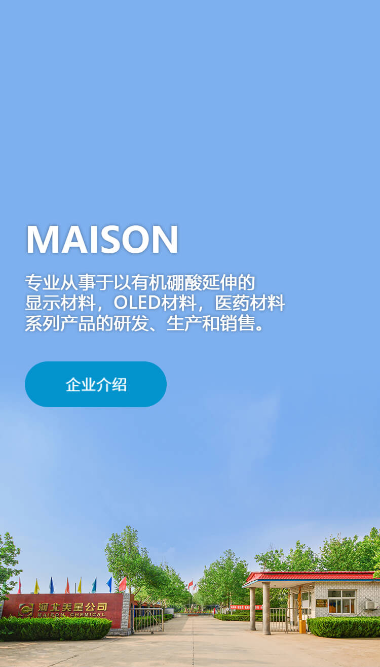 成立于2006年5月,專業(yè)從事有機(jī)硼酸、醫(yī)藥中間體、OLED中間體及液晶材料研發(fā)、生產(chǎn)、銷售的中外合資的高科技企業(yè)。產(chǎn)品廣泛應(yīng)用于醫(yī)藥、半導(dǎo)體顯示材料等領(lǐng)域。